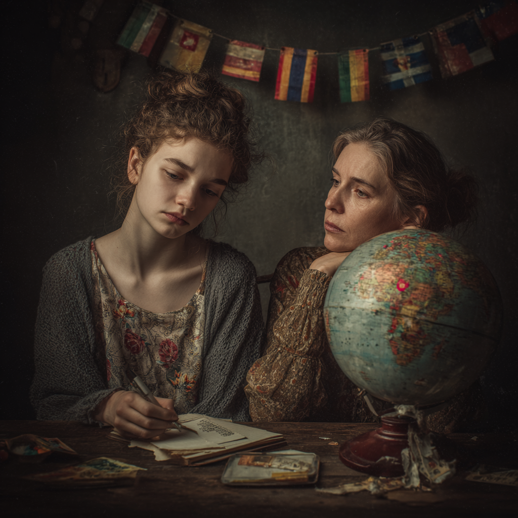 with her notebook and pen — nothing else matters.