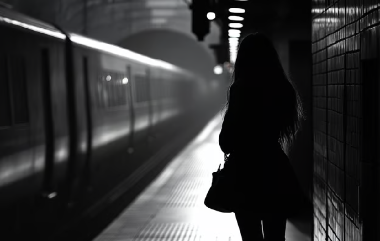 Before getting off, she glances at me…