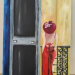 This oil painting captures a quiet moment of anticipation. A woman in a red dress waits for someone who promised to take her to dinner. She is elegant, passionate, and still—caught between hope and uncertainty. The closed door beside her reflects time passing, while her posture speaks of longing and patience.